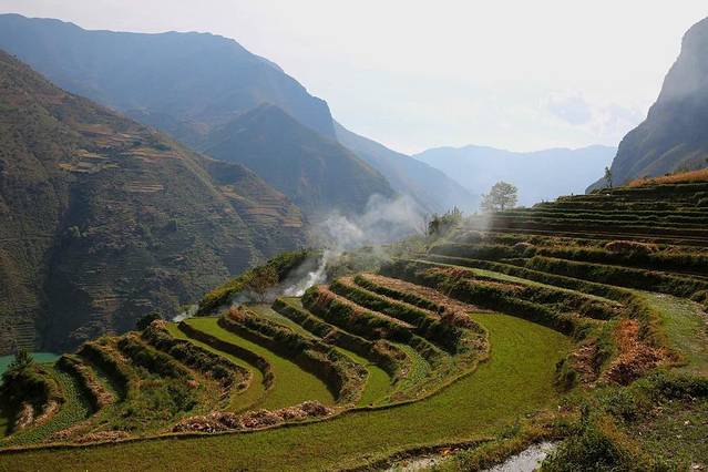 为了生活,勤劳的纳西先民垒造梯田,兴建水利,种植水稻、小麦、玉米等农作物,形成层层梯田环绕着石头城。