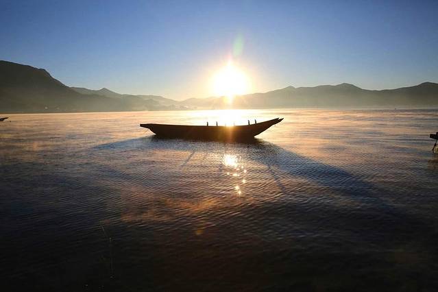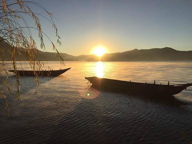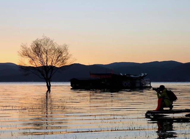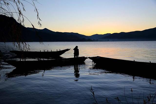 为了拍泸沽湖的日出,尽管天寒地冰,我们还是早早就起床了,扛着各自的家伙去占领有利地形!