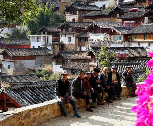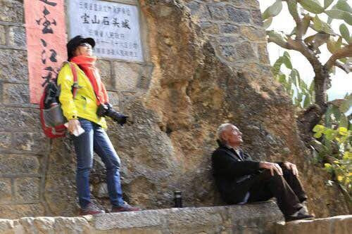 石头城入口处坐着的老人们在安静淸闲的抽烟聊天....