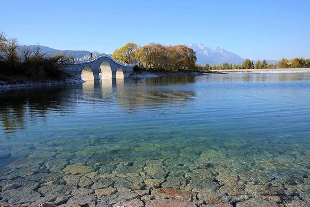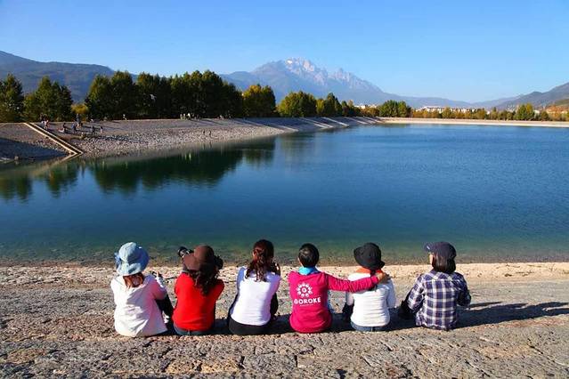 淸溪水库不是一个很有名的景点,是丽江饮用水源地之一。但是这里风景很不错。出城不远就在象山脚下。一泓碧水映衬着雪山倒影,宁静深邃。冬天,它是一个休闲晒太阳的好地方