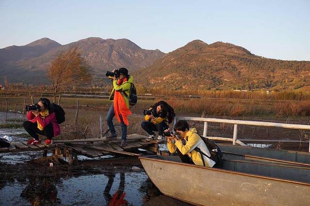 拉市海位于丽江县城10公里处的拉市坝中部,是云南省第一个以“湿地”命名的自然保护区,拉市海山清水秀,水绿得像无瑕翡翠,清得可见潭底!我拍、我拍、我拍拍拍......