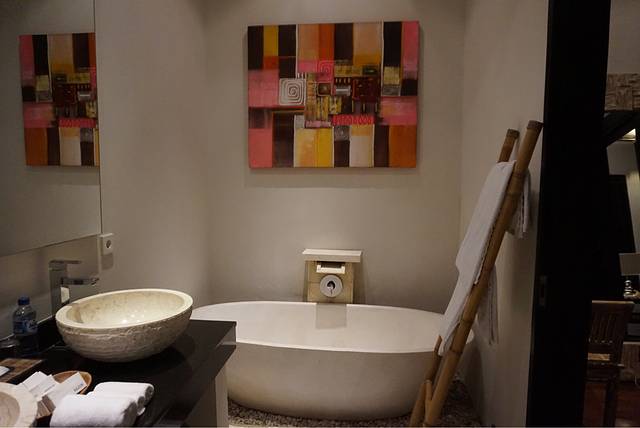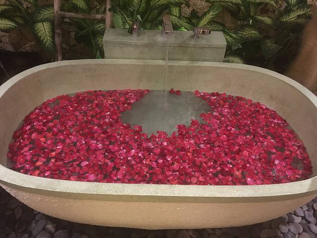 房间带私人泳池。所以我又把我30岁前裸泳的想法给完成了..哈哈哈