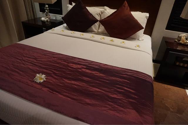 我们的大床..还有我最喜欢的鸡蛋花作装饰..不错不错