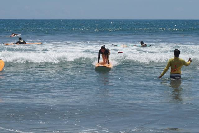 冲冲浪教学中,30岁前要做的事情之一。哈哈哈很爽很爽真的..上网订rmb219,有门店,而且教练人很好。不怕被坑还是怎么样!我的教练是个很有绅士风度的男人。英文教学,不会游泳也能学,但是一定要和教练说..