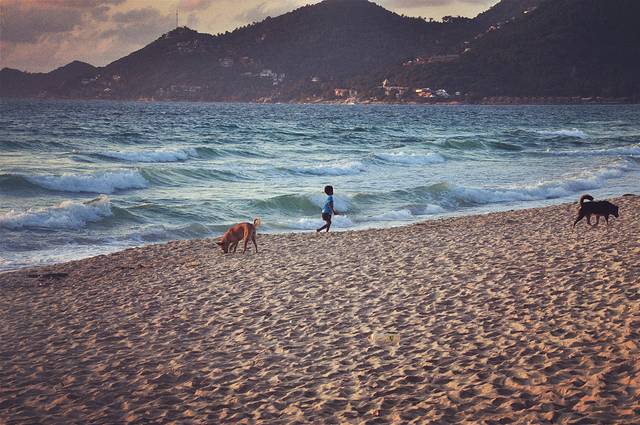 记得一天,是我们离开这海边小屋子的一天。我们晨起,去看日出。从渐渐破晓 到东方即白,那个晨跑的男人又出来跑步了,还有可爱的小朋友正和那几条可爱的狗狗玩耍。