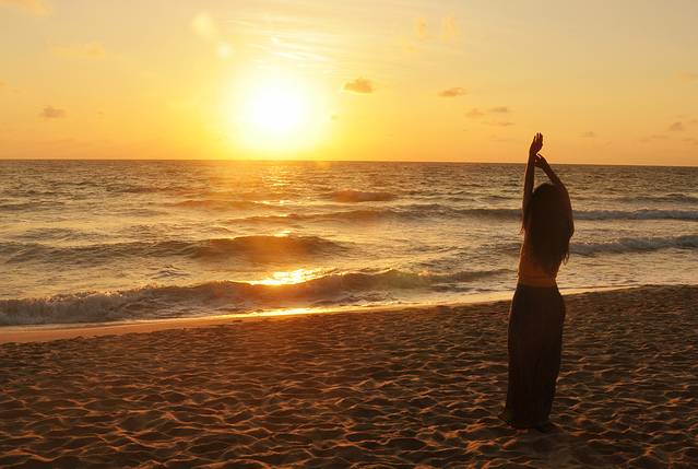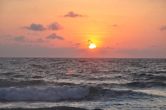 那日晨起,看日出,清晨的海滩特别安静,天渐渐破晓,大地朦朦胧胧的,如同笼罩着银灰色的轻纱。一会儿,东方天际浮起一片鱼肚白,大地也渐渐地光亮了起来,太阳慢慢从海平面升起,从一个半圆变得越来越圆,像一个火球冲破晨曦,冲破云雾,将金黄色的光洒在大海上,洒在沙滩上。