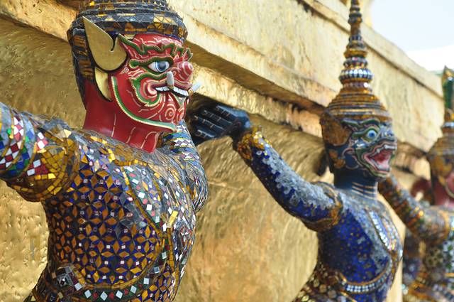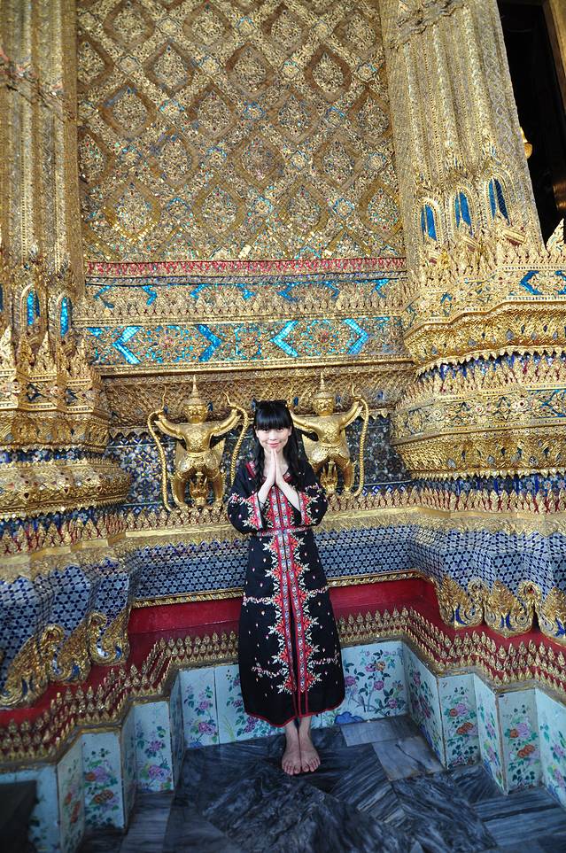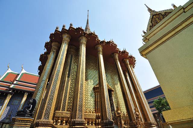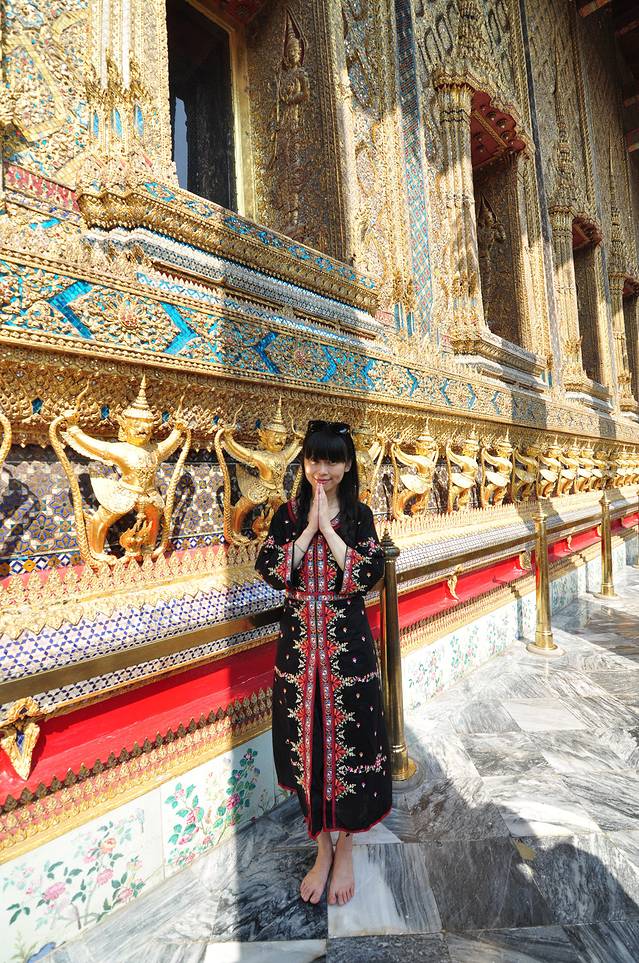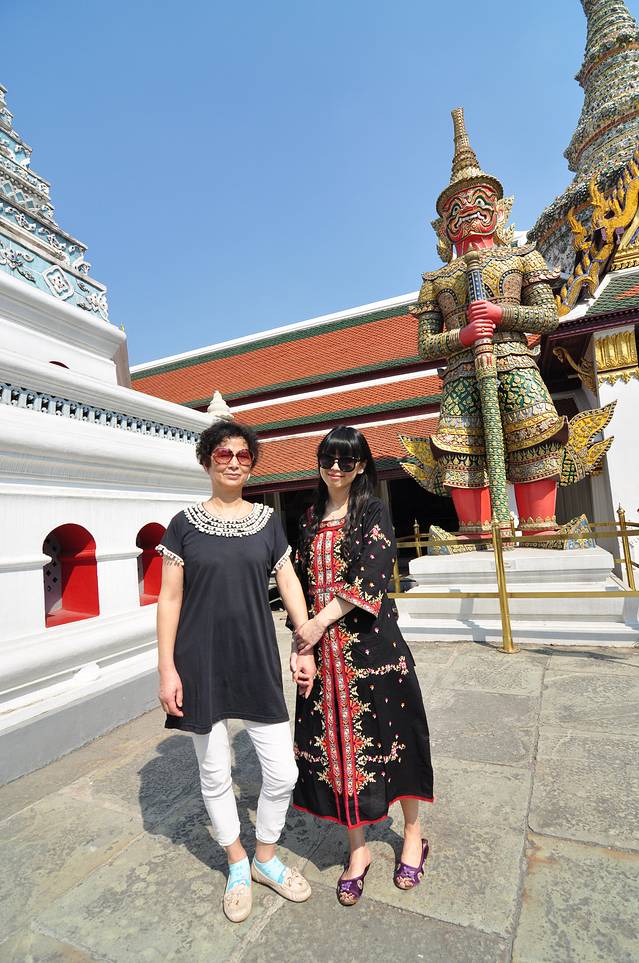 其 实晨起时胃部已经不太舒服,不知怎么的,也许是吃坏了东西,一直都想吐可吐不出来,上午在逛商场时已经热一阵冷一阵,但还是顶着虚弱的身体就想陪爸妈去看 一眼曼谷最著名的大皇宫,可下午在烈日下等了45分钟之后体力透支到不行,拥挤的人流再加上第二次来,完全没有激情,稍微逛了一圈就歇菜了,我让老公带爸 妈再去小逛一圈,自己坐在凉爽的地方休息。