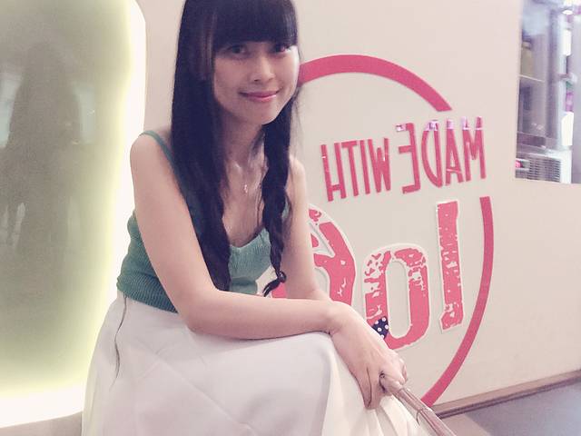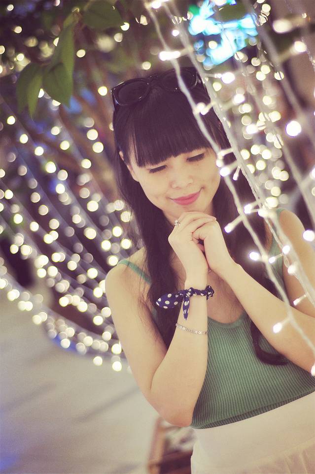 她扎着马尾,娇小的身材,没有浓妆艳抹,却有迷人的微笑和妩媚的眼神。