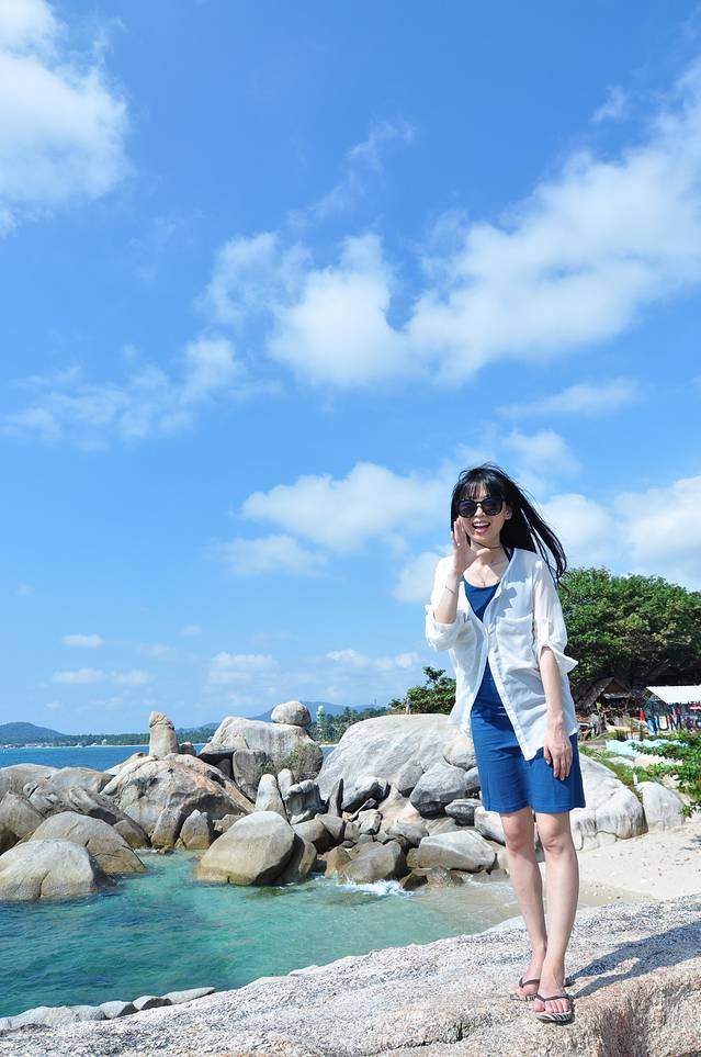 到达卧牛岛后上岛吃饭,这里水好蓝好蓝,好像找到了pp的影子,我们找了一张面海的石头桌子,这里不光是吃饭,还是视觉盛宴。