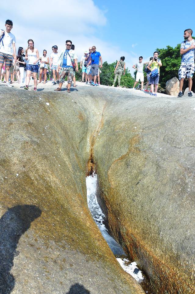 去程还算顺利,虽然一开始完全掌握不了方向,还彼此分散了力量,但后来彼此鼓劲顺着一二一的步伐终于到达终点,当时已经累成狗,终点是一块小沙滩,我们在那儿玩了一会儿,启程返航,我们穿过山洞,绕过礁石,一步步前行,可当我们调转方向的力气根本抵不上风吹一下的力气时,当时真的很无助,无奈风把我们越吹越远,我们吃奶的劲都不能使船往正确的方向移动一步,只能任由风把我们吹到礁石边,然后用桨顶住礁石把我们往正确的方向推。真怕就这么飘在茫茫大海中回不去了。