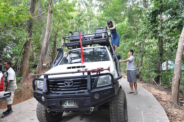 车子大概开两个小时的样子,因为前后椅子间距较大,可以舒服的把椅背放到最下,然后就可以在车上舒服的睡上一觉。车子抵达码头后,下车往码头的登记处同样出示订单信息,她会给一张船票贴纸贴在你身上作为乘船凭据。