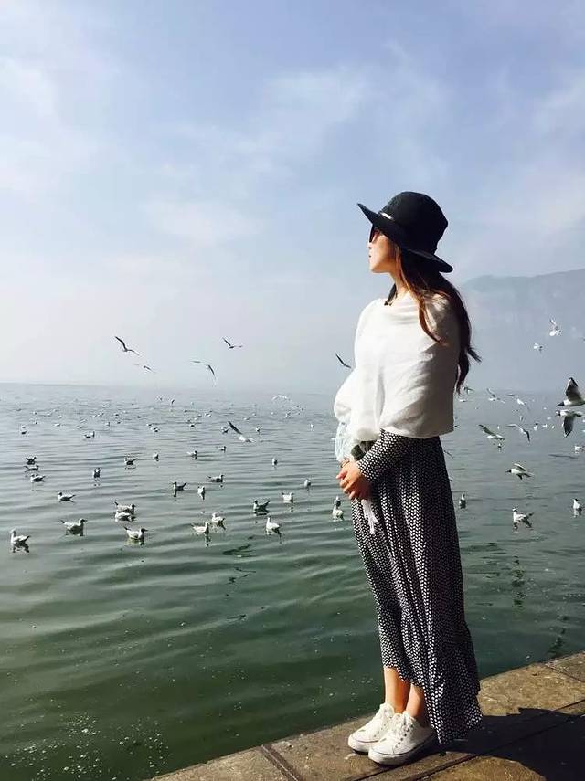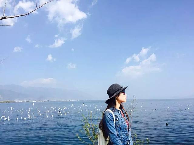 洱海也有很多海鸥,不知道怎么走的,路边务农的农民会告诉你哪里有海鸥,哪里好玩一点。我照相都是照侧面,不看脸怎样都美,O(∩_∩)O哈哈~