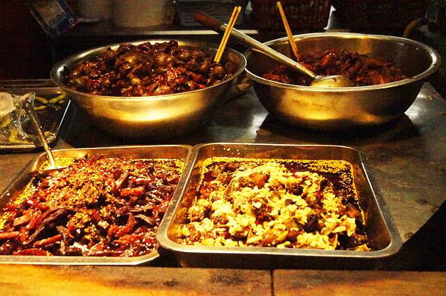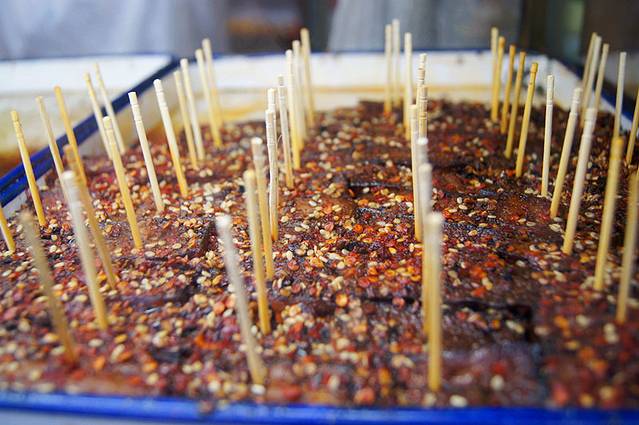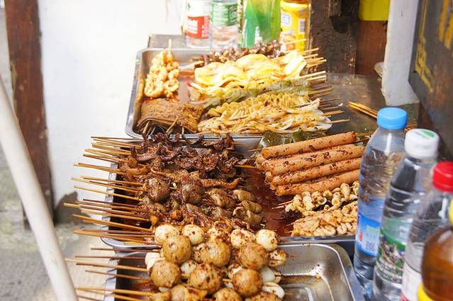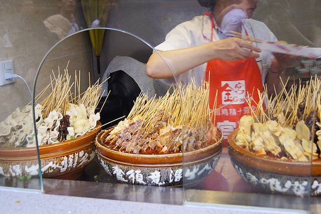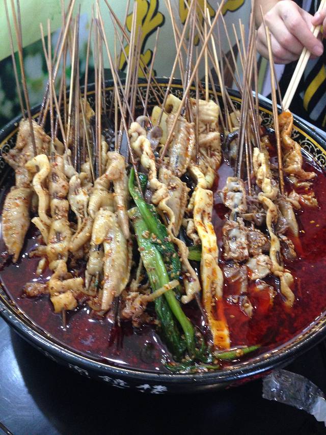 总是临近下午出发,搭乘地铁到达天府广场站。我们找了家店开始吃串串,一吃就停不下口。就这奶茶,一串又一串下肚。