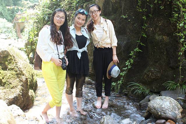 就近用了午餐,我们开始了爬山。说是爬山,我们其实是走走停停。后山的树和水很多,很凉快。因为是周末,有许多成都人自驾来后山纳凉,不禁再一次感叹他们多么会享受生活