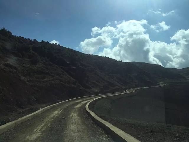 虽然有修建,不过路面还没有铺设好。手机隔着车窗玻璃照,就是这么邋遢