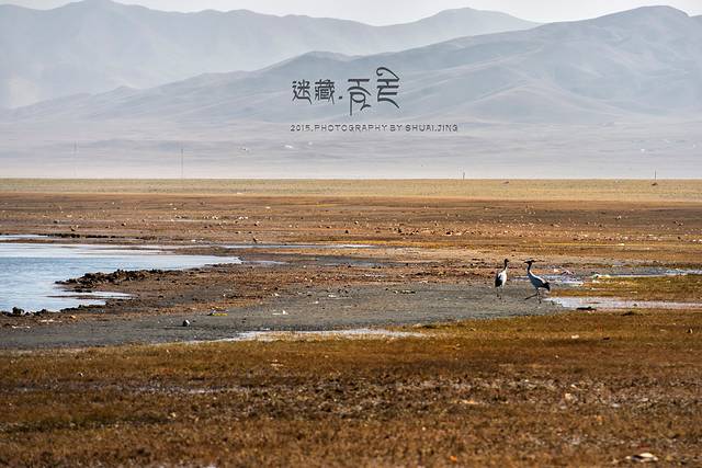 在一片湿地拥抱的湖泊边,我们发现2只黑颈鹤的身影。红色的头黑色的脖颈,黑色的尾巴在褪去翠绿衣衫的金黄湿地中显出一种高雅的气质。它们慢腾腾的抬起脚走动,闲庭信步的样子好惬意。