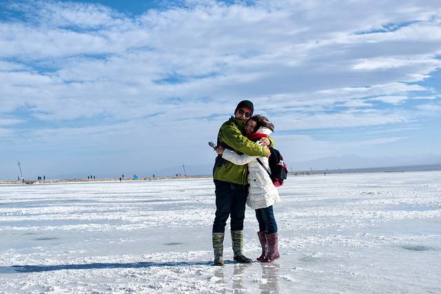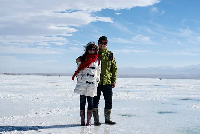 估计来时季节不对,盐湖上几乎没有水,倒影就无从出来了。