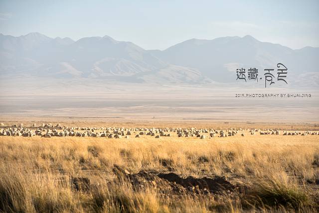 出茶卡盐湖,已接近黄金日落时分。道路两旁,低头可见成群的牛羊牧群。