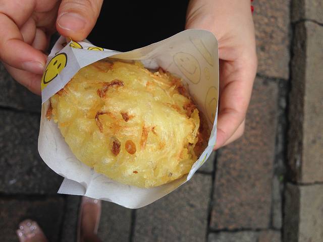 小麻子萝卜丝饼排队的人很多,味道也很鲜。不爱吃萝卜的我们仨也吃了一个。(3元1个。)