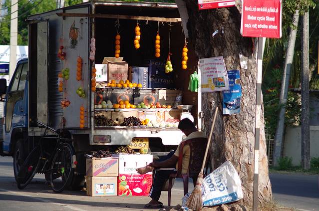 去贾夫纳的路上,第一次因为自己是外国人被让座了,挺不好意思的。汽车是停在贾夫纳的汽车站,一出门就有三轮车了,可以压一下价,汽车站外面前面后面或者附近都是集市,可以吃饭买水果,出了大门左拐往前走有个大超市可以买到很多东西,右拐的话是去邮局的方向。而且,如果要回科伦坡的话,可以在汽车站出门右拐的路上有很多订票的中介,不记得多少起了,做一晚上的车,我坐的是没有床的,就一个座椅,大概早上五点左右到科伦坡。