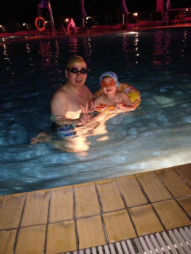 回酒店后游泳,酒店的泳池水不好,孩子玩了后眼睛肿了。