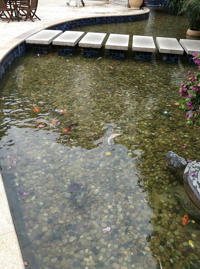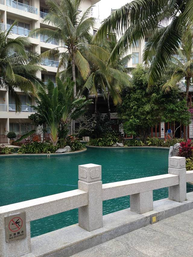 21日寄存行李后去往南田花园温泉别墅酒店(0898-88819888)泡温泉,8:30开始有两班车去,在珠江花园酒店门口坐车。最好住一晚别墅房,否则玩不尽兴。别墅房自带泡池,晚上一家人泡浴池很有情调。住别墅房管早饭,下午可以在酒店的农家乐吃,电瓶车随叫随到。酒店环境优美,南国的植被郁郁葱葱,从北方冰雪世界来到这别有一番感觉。中心区有各种泡池,大家最喜欢的好像都是鱼池,有专门的儿童乐园,孩子和小朋友们玩的不亦乐乎。
