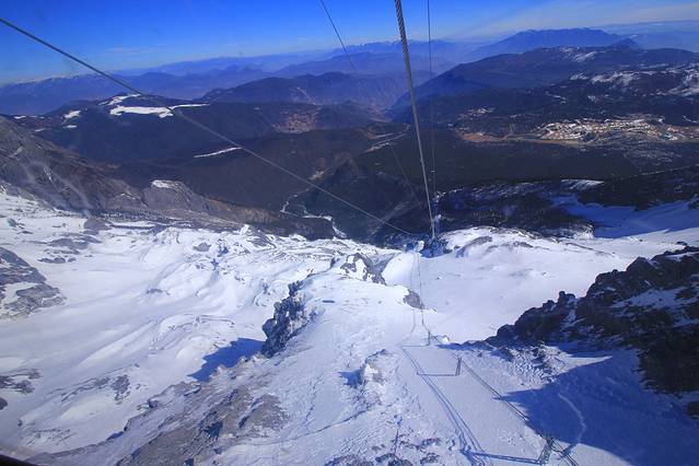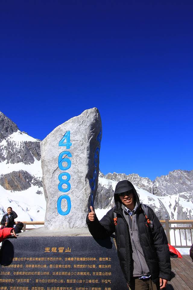 第二天是玉龙雪山一线一日游。这个是头一天在丽江里照的旅行社报名的。古城里的旅行社太多太多了,报价也不等。说是包含雪山上的羽绒大衣和氧气,实际上都没有。那些羽绒大衣说是什么波司登的特别贵的,其实都没有必要去租,还没自己的好呢。。。建议自备一件羽绒服或冲锋衣。如果天气好,山上阳光充足,不会很冷的,穿多了会走出汗。