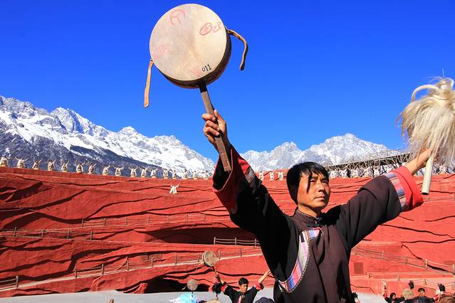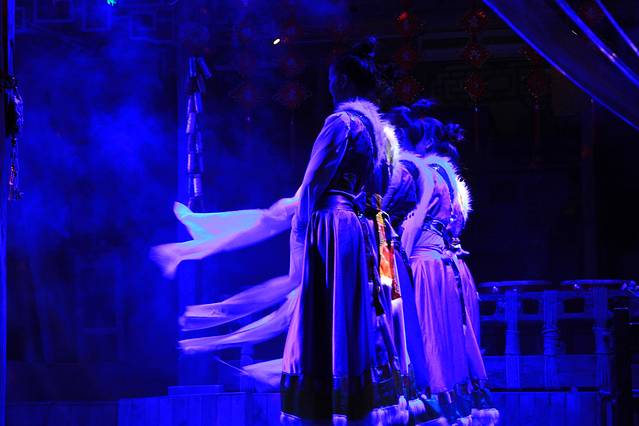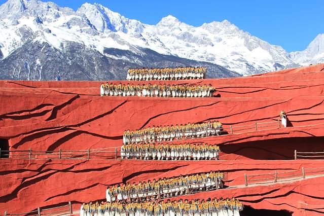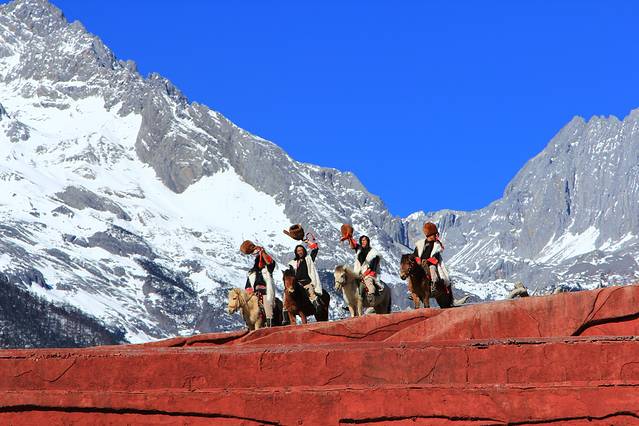 来自当地少数民族的舞蹈演员们在雪山下歌唱舞蹈出对民族文化的尊重,对脚下这篇土地的热爱,以及对来自五湖四海的亲朋好友的热烈欢迎与真挚祝福,非常震撼,也很感人,略带伤感。有机会值得来现场体验一下。