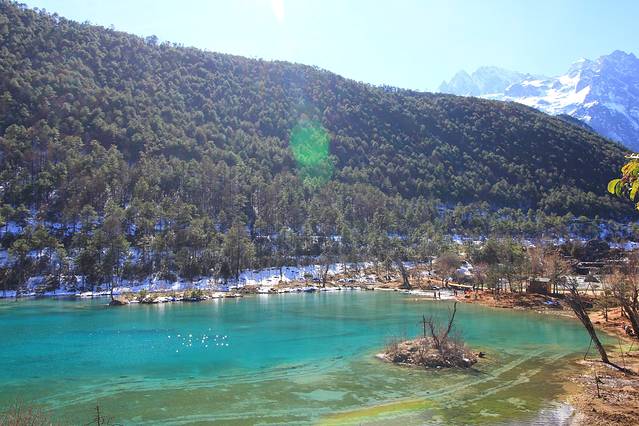 在玉龙雪山下还有一个著名的景点,蓝月谷。感觉这里和九寨沟有一拼啊,就是小了点。