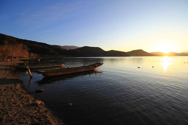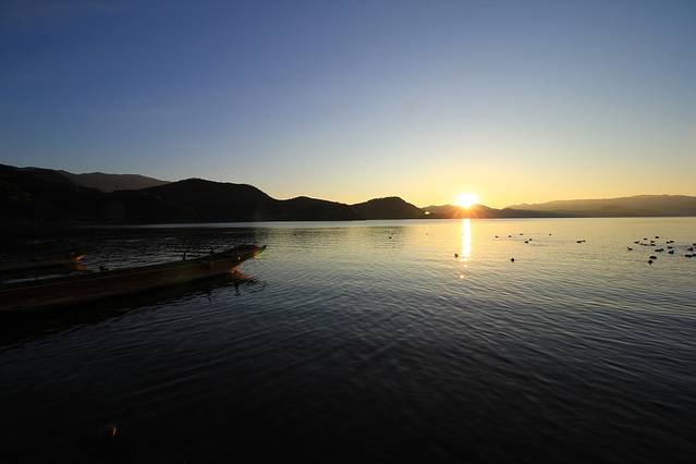 泸沽湖的日出很美,由于到的比较晚,没有赶上坐船,不过在湖边看也挺好的。