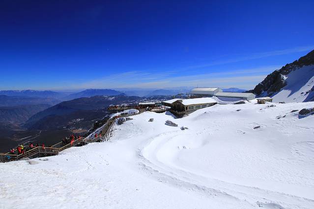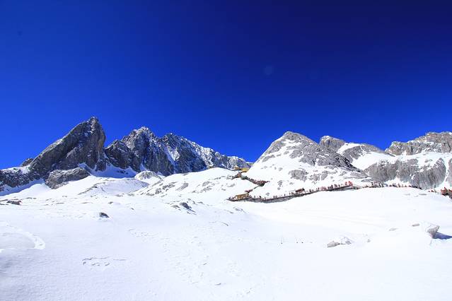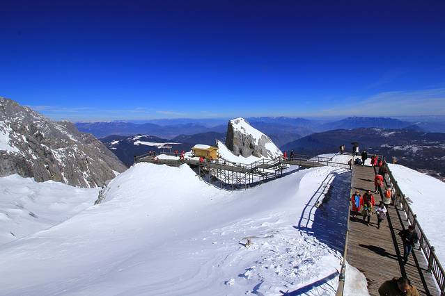 在整个景区里会有摆渡车,到达各个景点都很方便。玉龙雪山山顶有一个冰川公园,就是那个类似与一个栈道似的木质结构的小路一直通向最好的观景台。要上去需要做百度车到达海拔约3500左右的地方,从那里做大索道,到达约4500左右的地方。剩下的要自己爬到最高点4680了