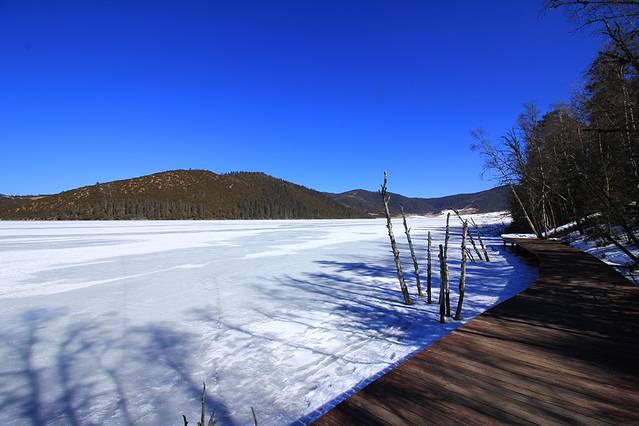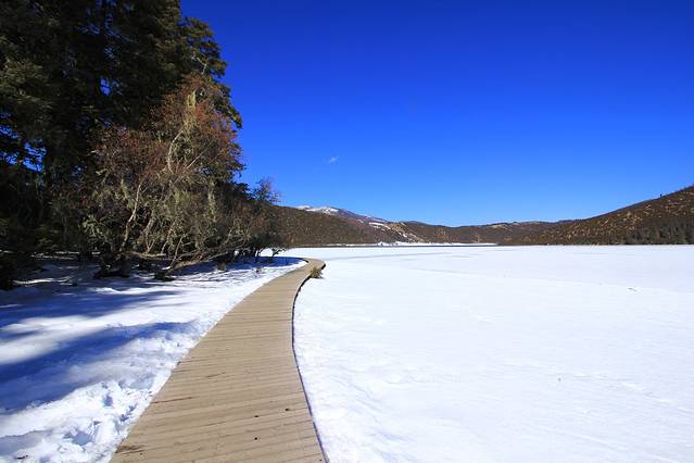 冬日里的普达措,虽说没有夏日里充满生机的景象,而是以雪景为主,但也别有一番景象。