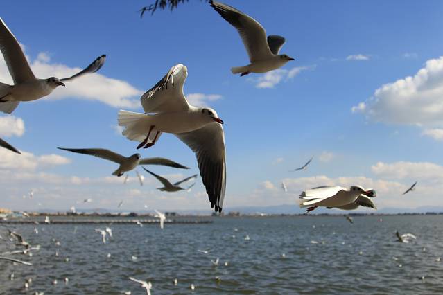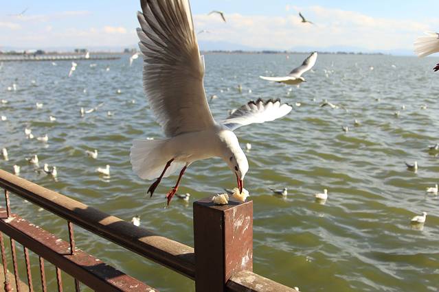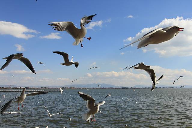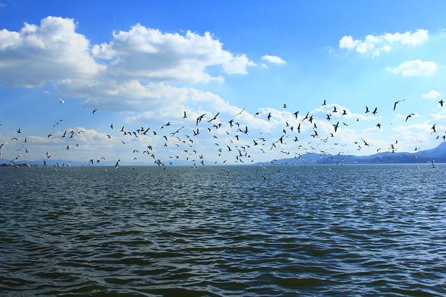 刚到昆明的那天下午,阳光很好,于是就选择去昆明著名的滇池。在这个季节刚好会有来自西伯利亚的红嘴鸥飞到滇池来过冬,在滇池湖畔会聚集大量的红嘴鸥。可以喂它们吃面包~如果想喂着玩,建议还是自己提前多买好一些,如果在公园里面买面包会很贵,一个10快。。。这次去就是买了两个,我都舍不得喂了,自己都少吃这么贵的。。。