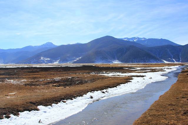 纳帕海是一个湿地公园,冬天了没啥水了,也没啥植被,再加上下过雪,就是这样的景象。这个地方可以骑马,不过最便宜的线路都要100多,于是我们都决定步行按照骑马的线路走了一大圈,走了一脚泥