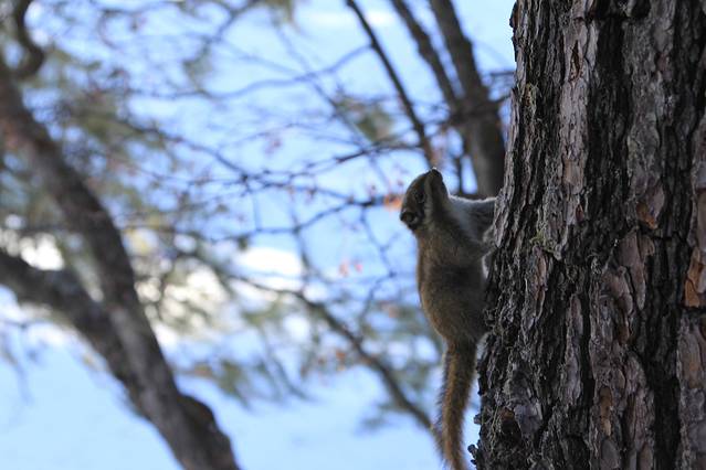 在普达措会有很多松鼠,我们喂它吃巧克力豆还吃上瘾了