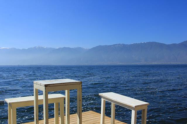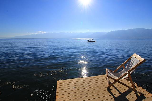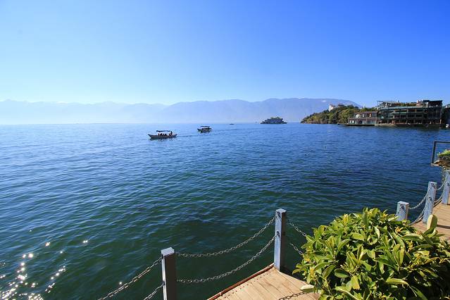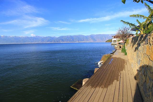 双廊,原本大理洱海东北边的一个小渔村,现在已经被炒成一个异常火爆的商业化小镇,相信不久的将来就会发展为一个旅游胜地。。。指数型增长的知名度并不是没有道理,当你来到这里是就会知道为什么它为什么这么火爆,一切都是源于这里的景色。站在湖边,大理最美的苍山洱海风光一览无余。往湖边一坐,晒晒太阳、吹吹海风、在看着这湖光山色,你会体会到什么才是生活。。。