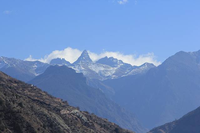 从香格里拉去往梅里雪山的沿途景色。今天天气很好,景色很美。除了白茫雪山外,其他地方的名字没记住。。。