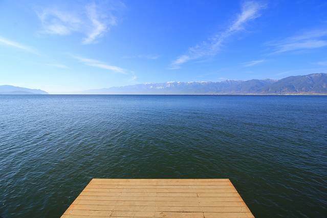 从大理古城到双廊镇很方便的,大概环湖半圈到东北角上。在西门外有巴士可以直接到,中途在一个地方还会停车让游客下车拍照。大多数客栈都可以帮着买车票。巴士只是送到双廊镇外面,下车后需要坐一段电平车,再步行一段距离,到达中心区域,大概就是有一个写着“大建旁“的石头那里,那些著名的客栈,像海地生活、澜庭别院、半月拖蓝都在这一片,往北就是玉几岛,往南还有一些靠近海边的客栈。