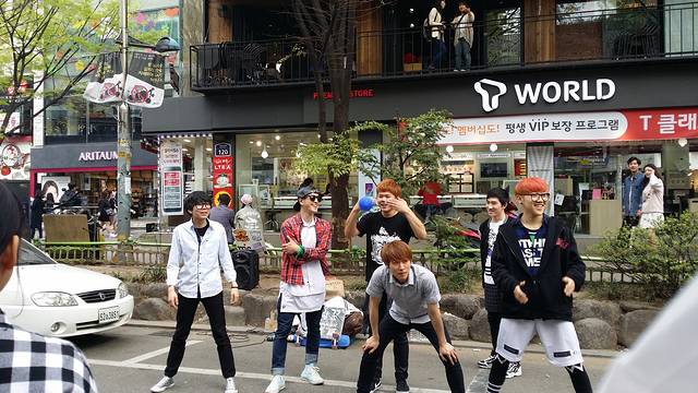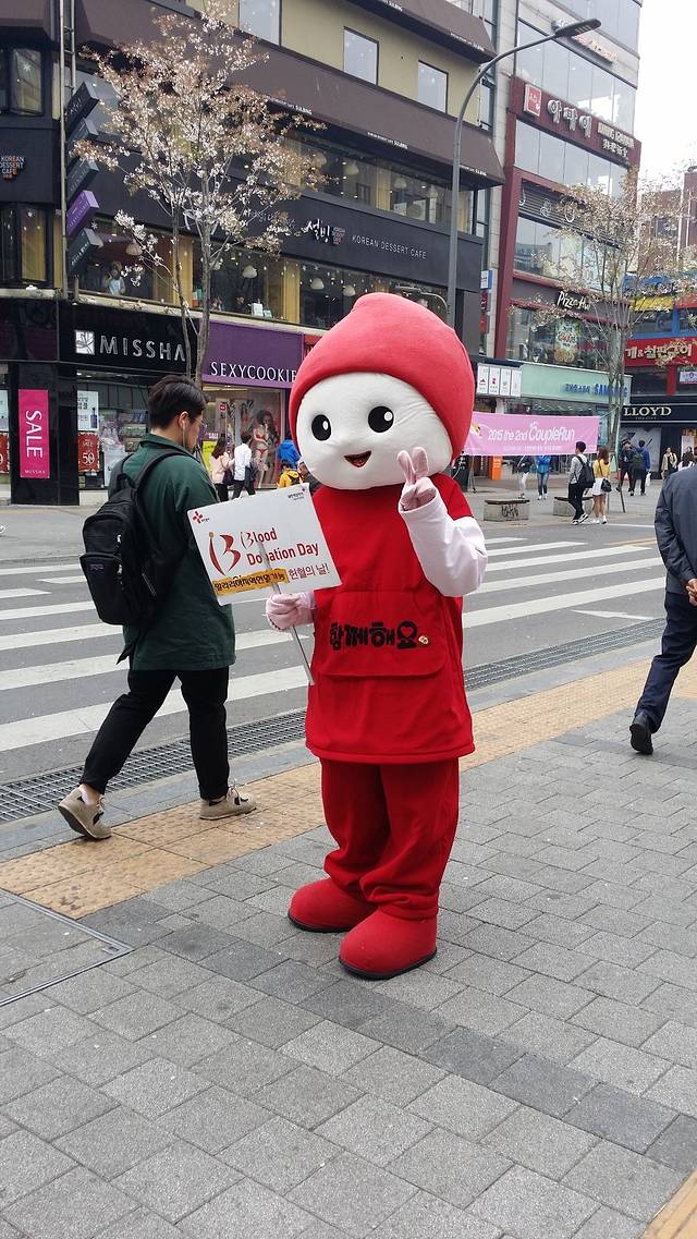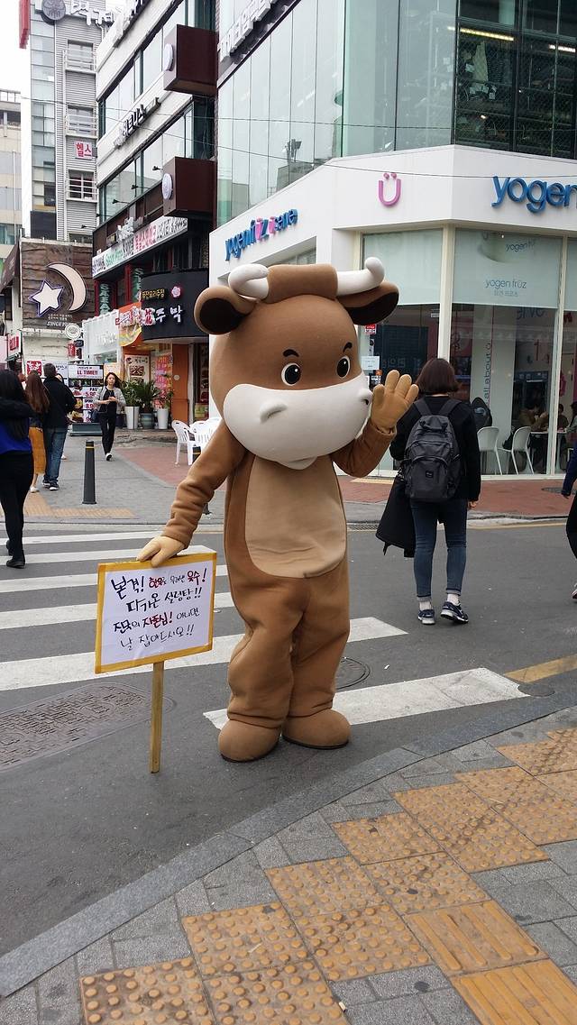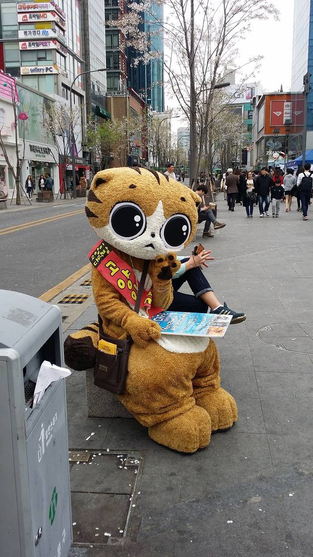 去弘大的路上,会有很多这样的人穿着玩偶的衣服,也不知道是在做啥,就是觉得蛮可爱的。