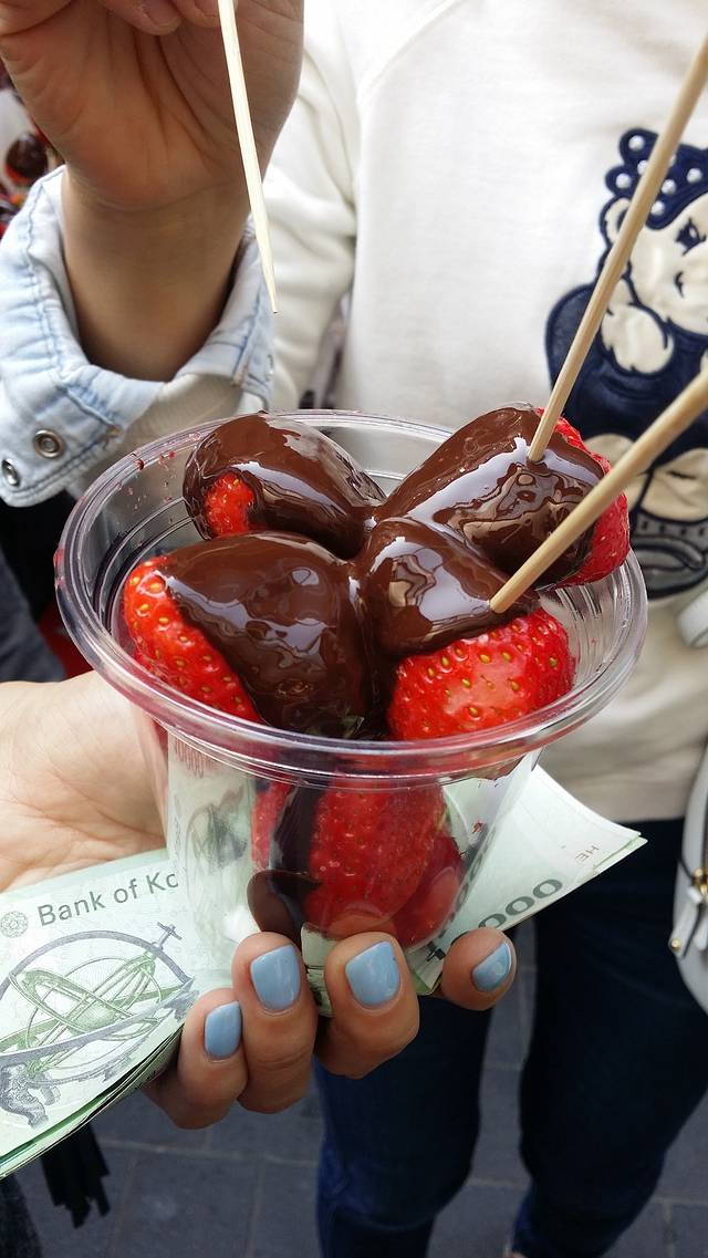 草莓上浇了巧克力酱,3000韩元
