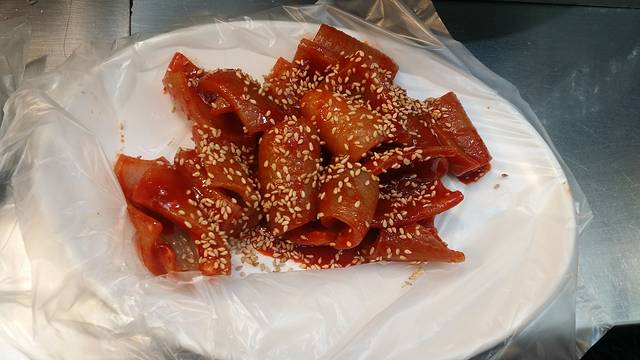 炒猪皮7000韩元,酱汁的味道很特别,我很喜欢