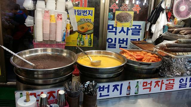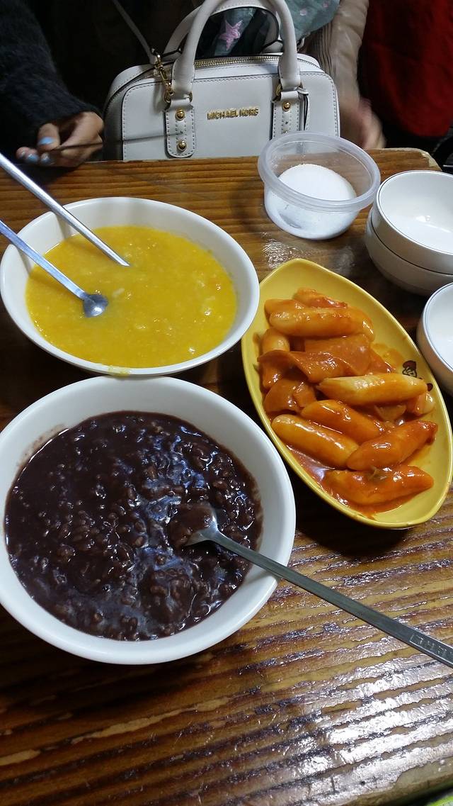 南瓜粥,红豆粥,炒年糕,各5000韩元,味道非常一般