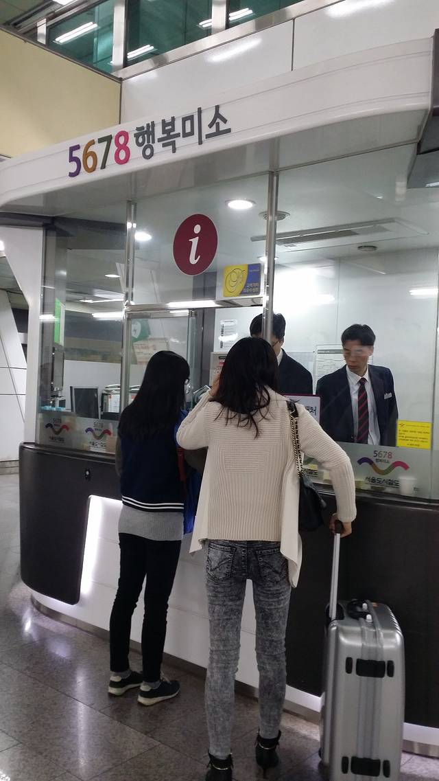 从金浦机场到地铁站过程中买地铁卡的地方。