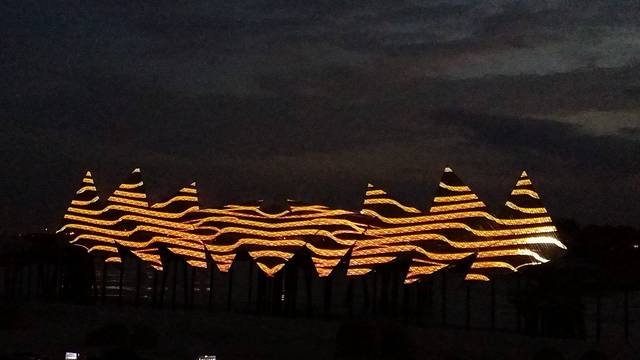 站在金沙拍的对面,也不知道是什么建筑,就是觉得挺特别的。