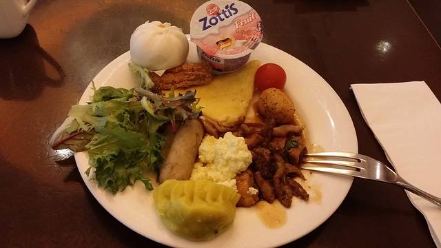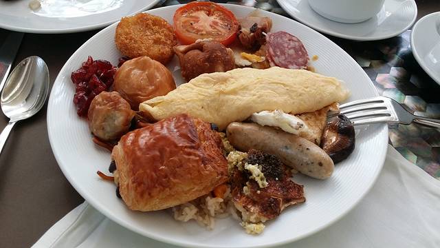 我们8:30下楼,没排队,吃到9:30,我们结完帐,看早餐排队的人已经几十个人了,所以说,如果吃,还是早点下楼为妙。