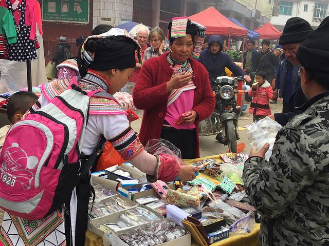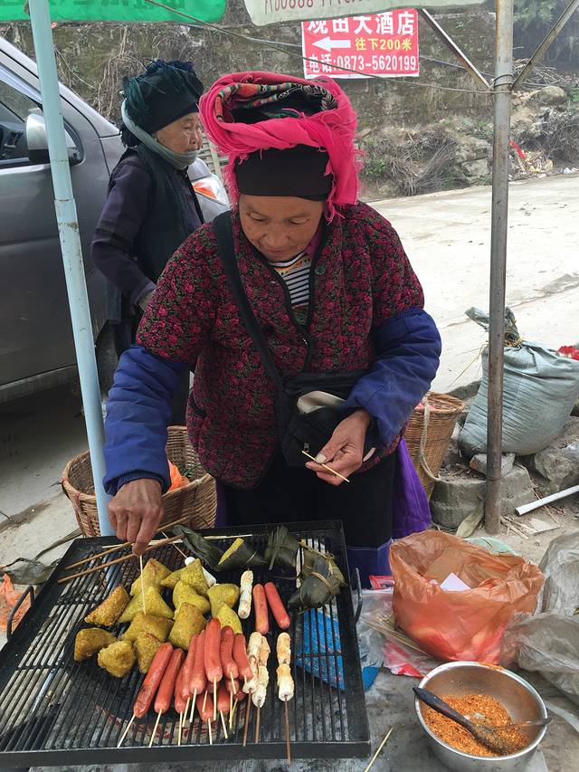 回到酒店,碰上拼车的司机,360一车(根据车的大小舒适度价钱不一样)我们三个人拼,司机还带了女友一起出来玩。拼车的好处就是可以带你到买票去不到的地方,我们第一站去牛角寨赶集