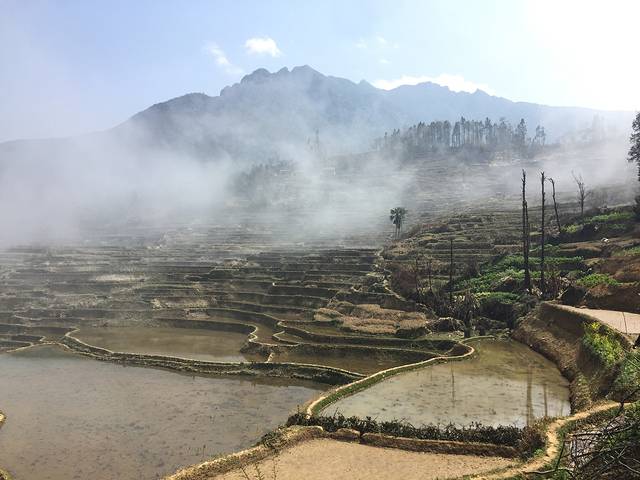 赶集完了已经是中午了,司机大叔带我们到了一家小饭馆吃饭,排骨,豆腐,真的是很好吃(我吃饭很挑剔的)35一人,吃完饭继续开车游,大叔带我们进了当地人的寨子。梯田大多一个样,拍摄角度不同,呈现的也不同。本人觉得如果能有当地人带你逃票,完全不用花100块钱买票。