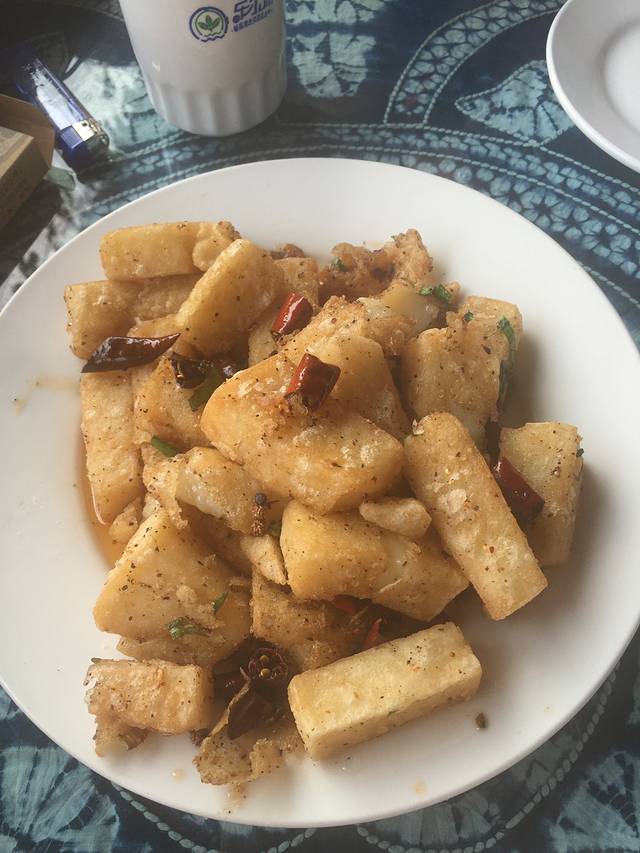 放下行李到了饭点,出去找吃的,就到了临安故事客栈的饭馆,住宿是二楼,吃饭在一楼。我们点了汽锅鸡,草芽和烤红薯,草芽的味道我是接受不了…其他的都还可以