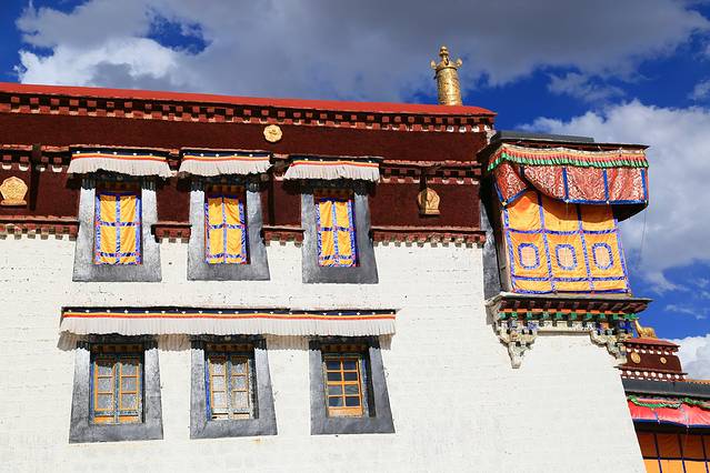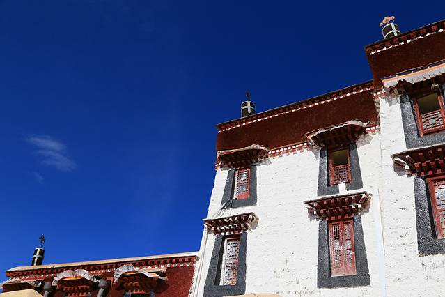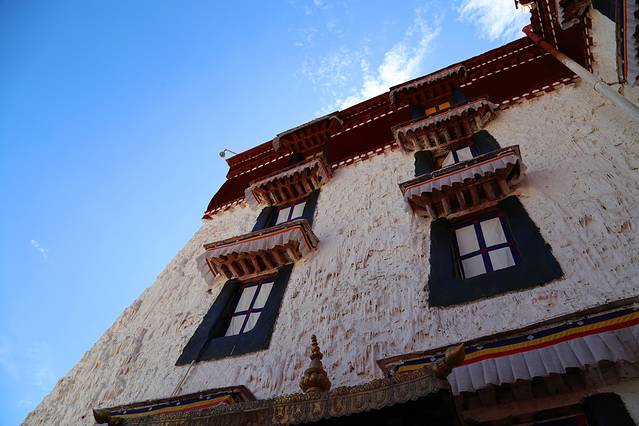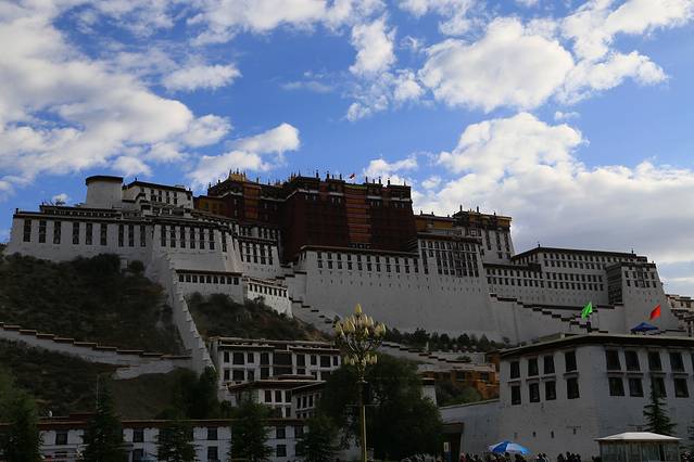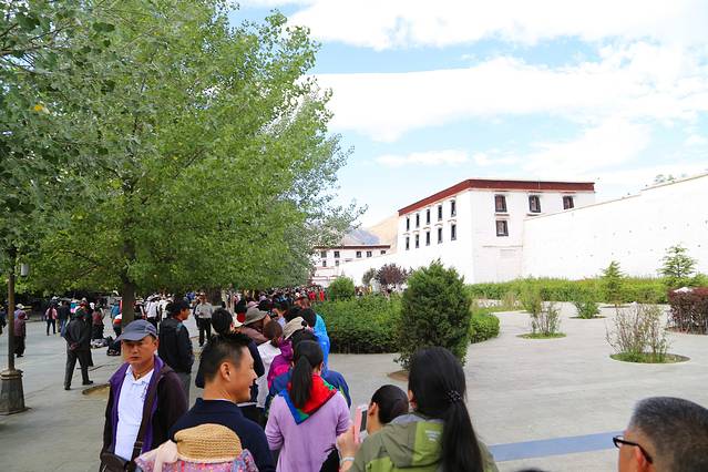 今天一大早就来布宫了。因为门票是提前预约的10点的。现在可以网上预订付款。也不需要换票。直接排队进场就好。到最后一道门会给你换纸质的门票。如果你选择现场买票需要提前一天够买。然后还要换取第二天的参观卷 当然如果你买不到票。布宫门口有很多黄牛甚至也可以报布宫的一日游。但是值得注意的是如果你是10点的参观。请至少提前2小时就到布宫排队。因为人太多了。排队进场里面好几道门也很慢~水什么的是不能带进去的排队的时候慢慢喝。放心会喝完的因为排队很久。女生不能穿裙子。如果穿了也没事放心旁边有卖裤子的。50一条。我本来带了一个登山杖因为布宫是建在山上。结果那天没带来。白白背到了拉萨。不过感觉不用登山杖也还好。