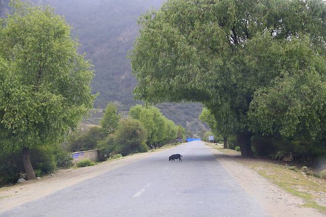 藏香猪。肆无忌惮的走着。马路不是给马走的。应该叫做猪路